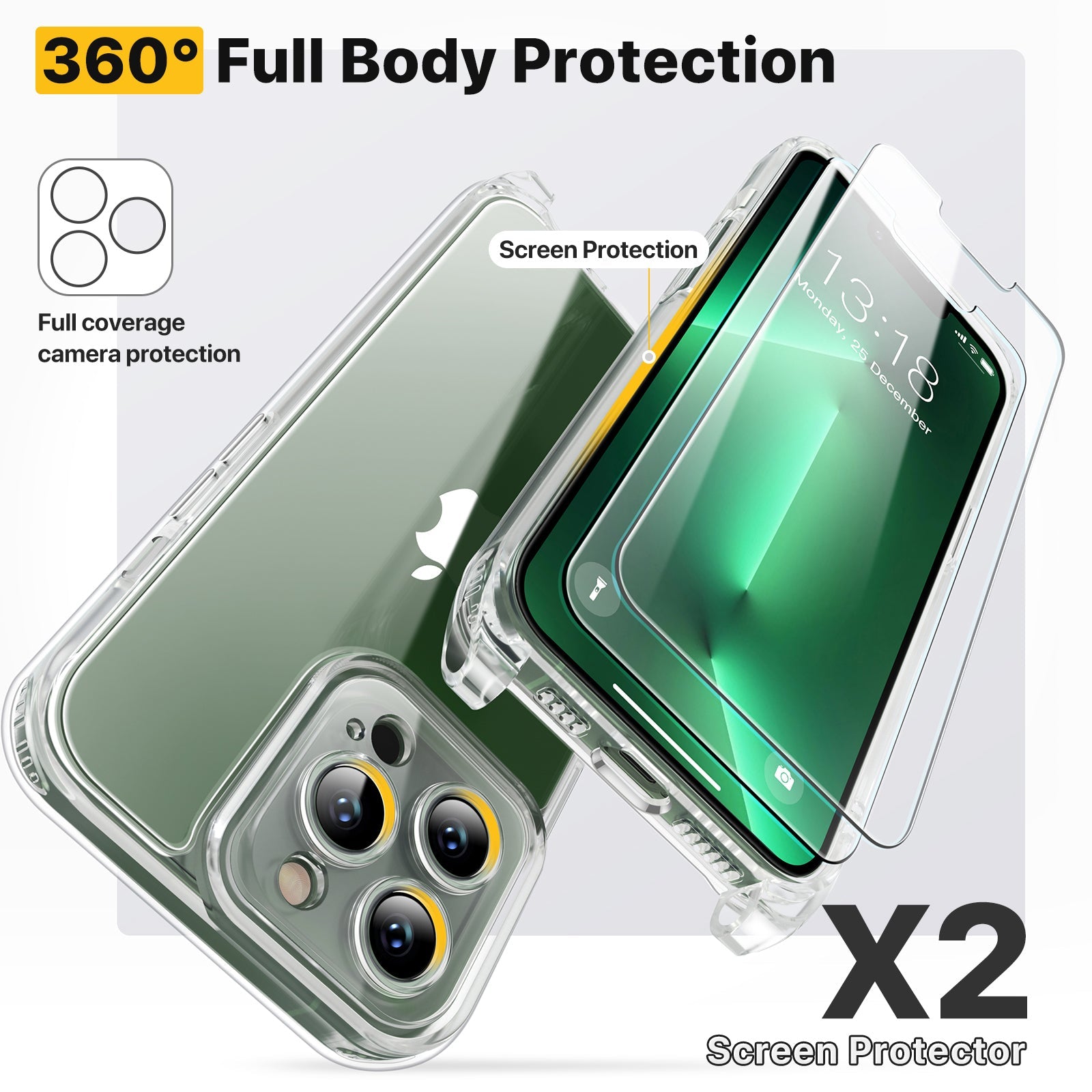 3 in 1 Transparent Case with Lanyard for iPhone 13 Pro Max 6.7", with 2 pieces of Protective Film | 360° Protection- Camera and Screen