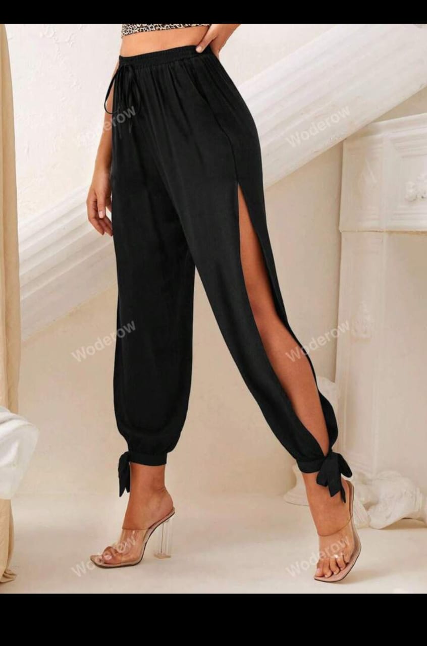 Fashionable And Casual Solid Color Elastic Waist Tied Slit Leggings Pants For Women S