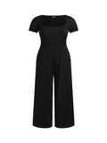 Women’s Plus Size Black Wide Leg Jumpsuit – Round Neck, Short Sleeve, Comfortable & Chic