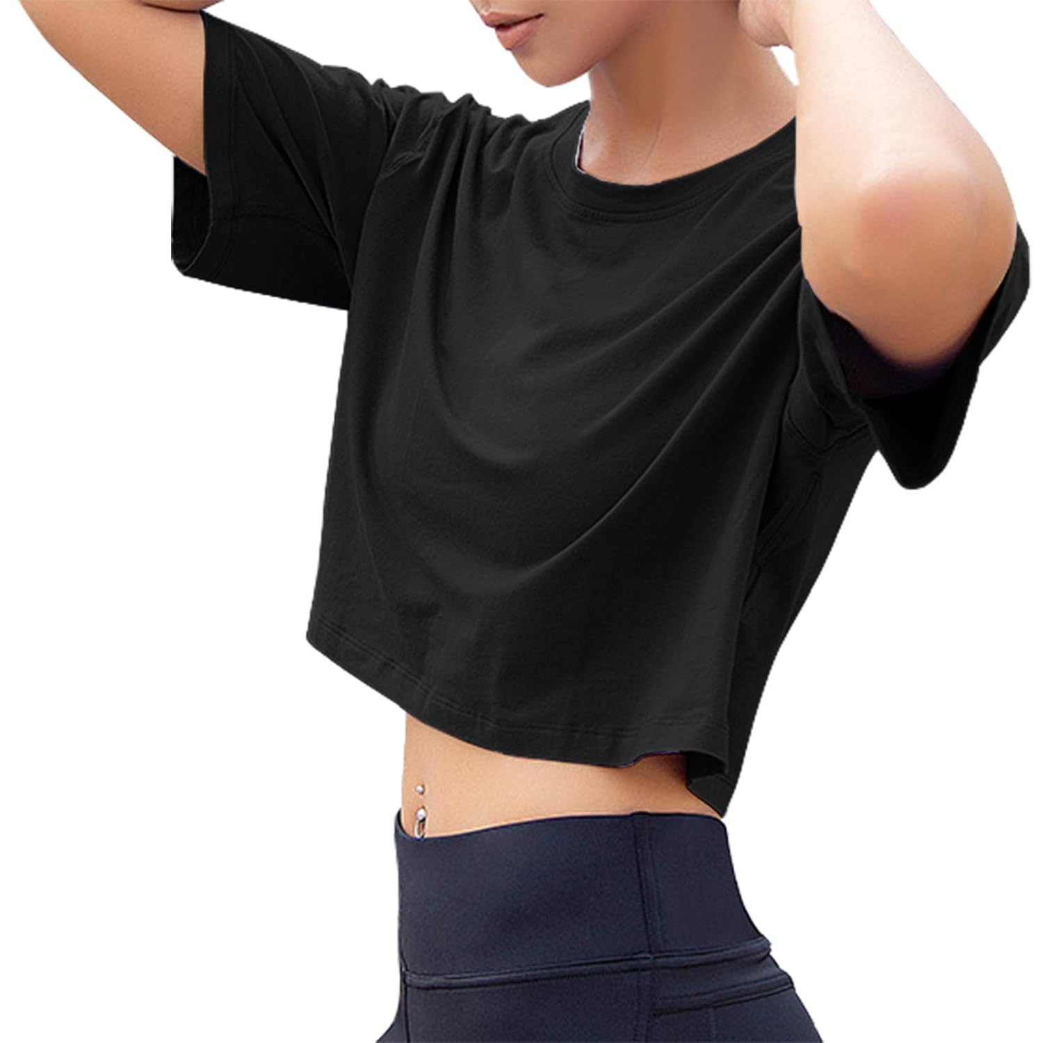 Women’s Short Sleeve Crewneck Loose Crop Top – Comfy Casual & Workout Tee
