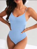 Elevate your workout wardrobe with this Seamless High-Stretch Yoga Bodysuit in a sleek solid blue. Designed for comfort, support, and confidence, this one-piece activewear features a built-in padded bra and a contour-hugging fit made from ultra-stretch fabric. The seamless construction minimizes chafing and creates a smooth silhouette, perfect for yoga, Pilates, gym workouts, or athleisure wear.