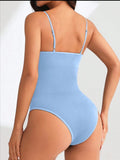 Women's Seamless High-Stretch Yoga Bodysuit with Padded Bra – Solid Blue, One-Piece Activewear for Gym & Studio