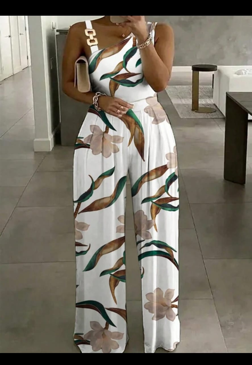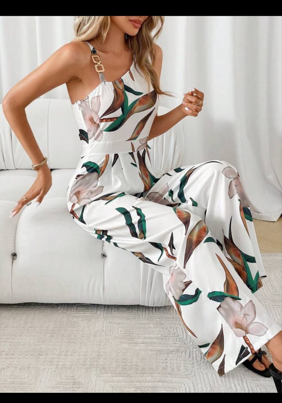 Women's Summer Casual Floral Print Sleeveless Asymmetrical Collarless Jumpsuit 2XL