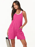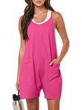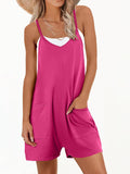 Women's Summer Casual Sleeveless Rompers Loose Spaghetti Strap Shorts Jumpsuit with Pockets, XXL